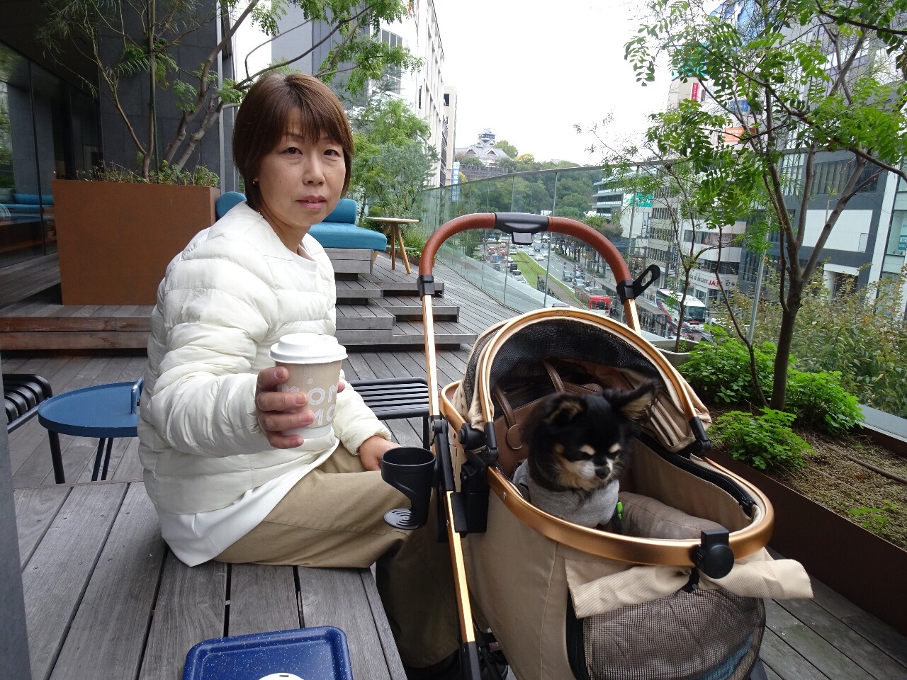 熊本城を望むカフェテラス