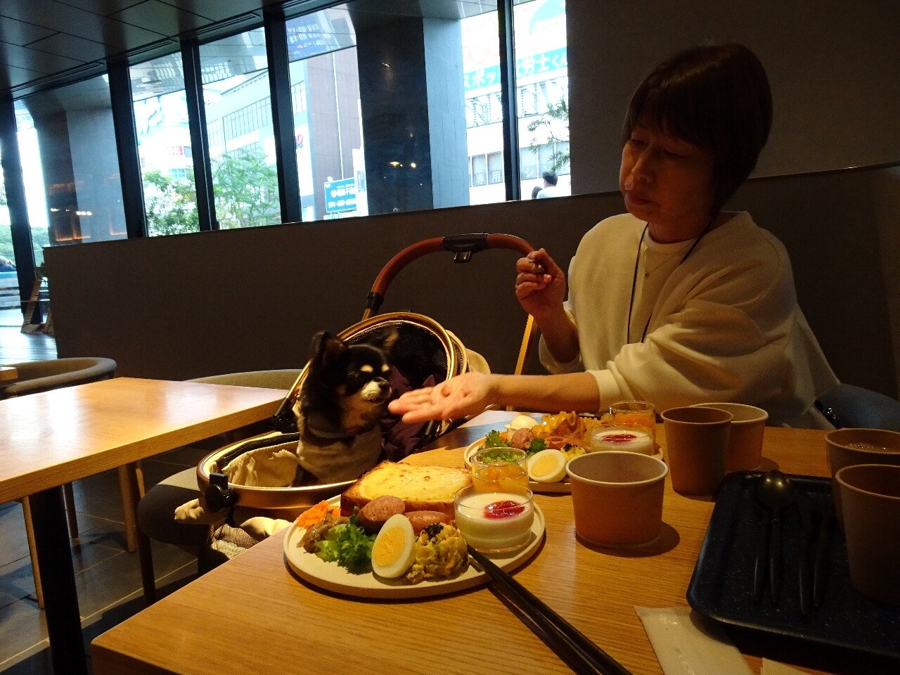 朝の食事はタロちゃんと一緒で
